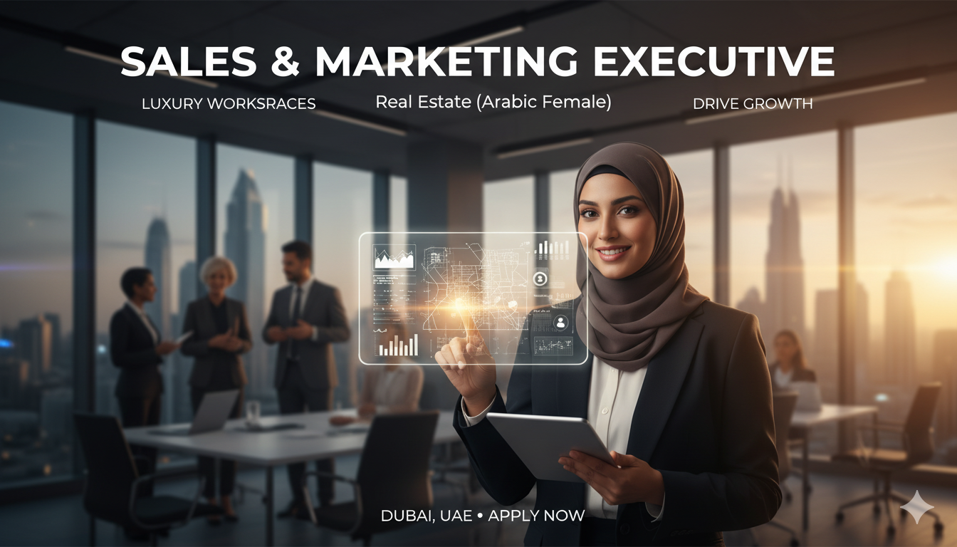• Experience: Minimum 2 years of experience in sales or marketing, preferably within the UAE’s real estate or serviced office industry.