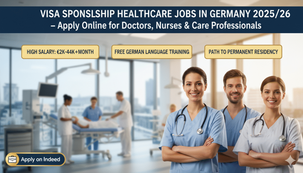 - Apply Here (job search link): Jobs on Indeed Germany – search “Healthcare visa sponsorship Germany”